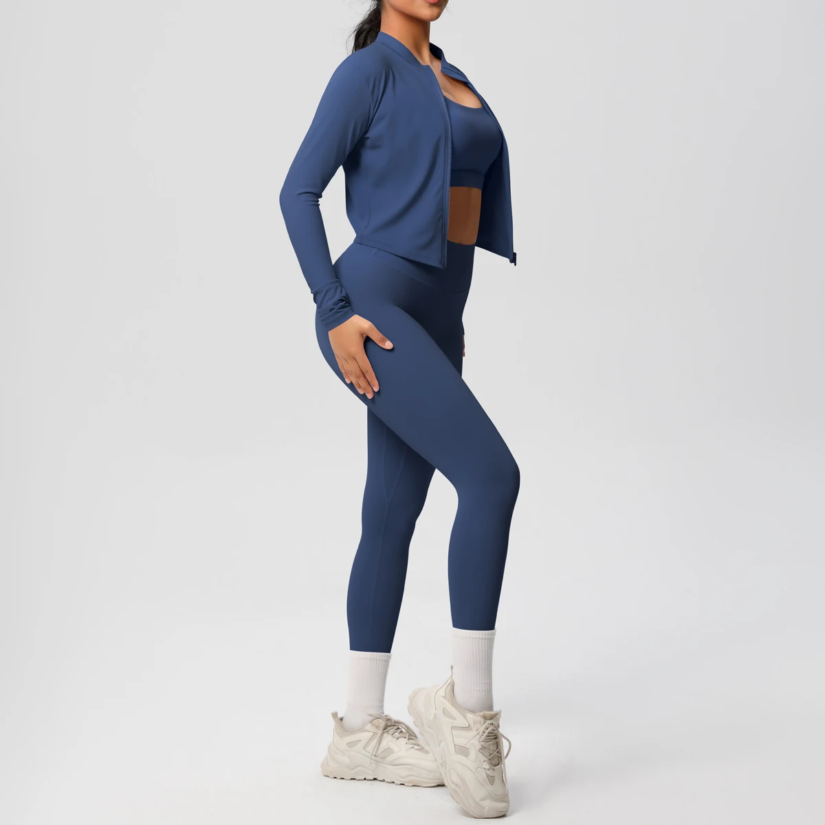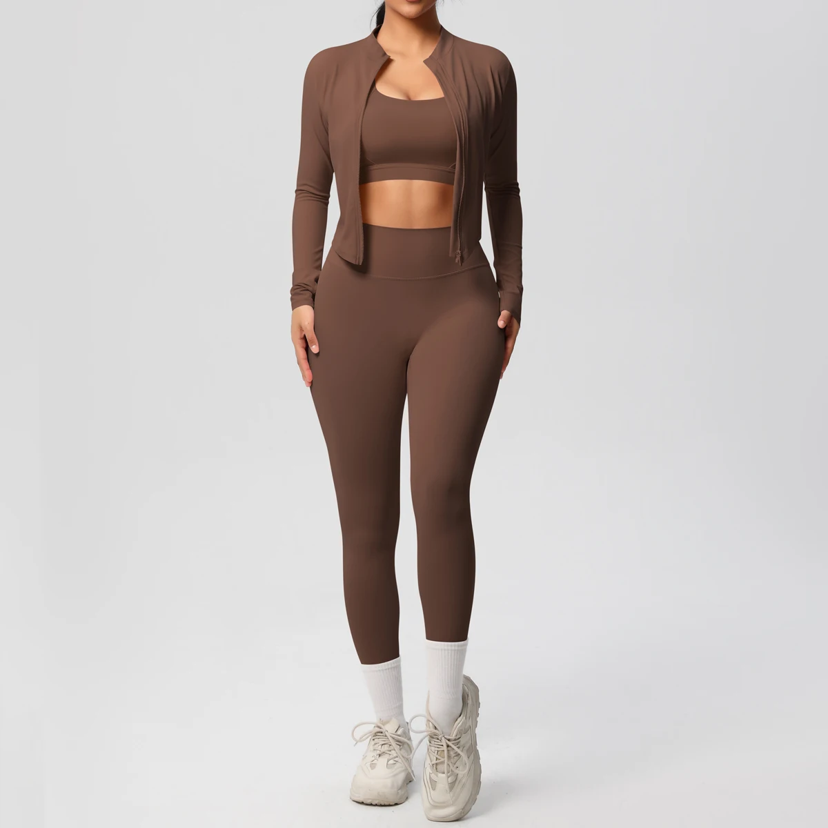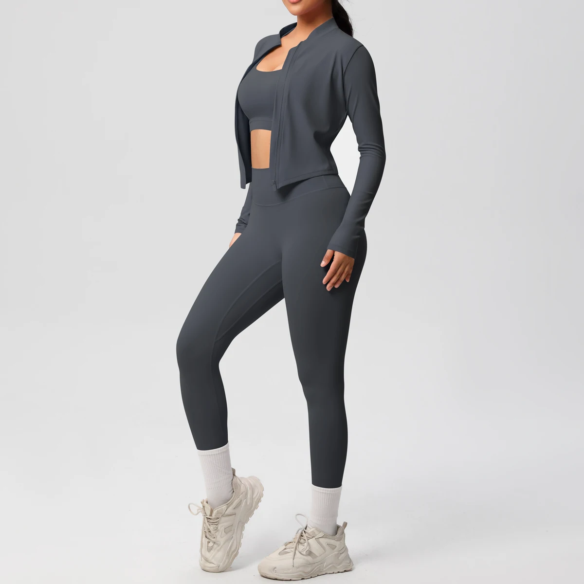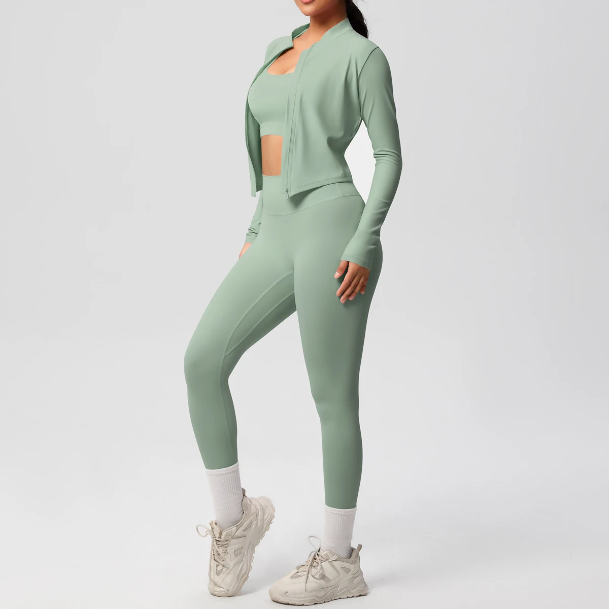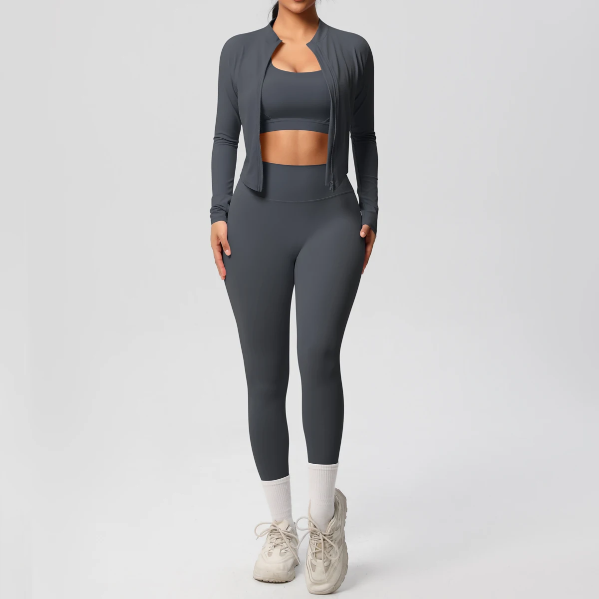 3-Piece Women's Sportswear Yoga Set – Zipper Jacket, Sports Bra & Leggings