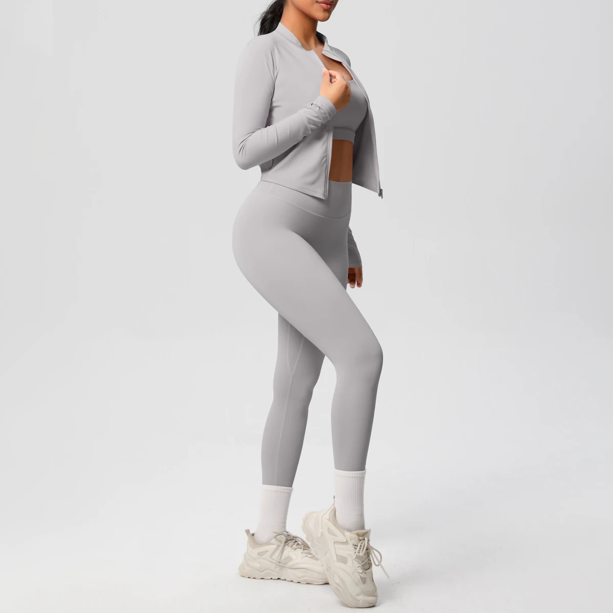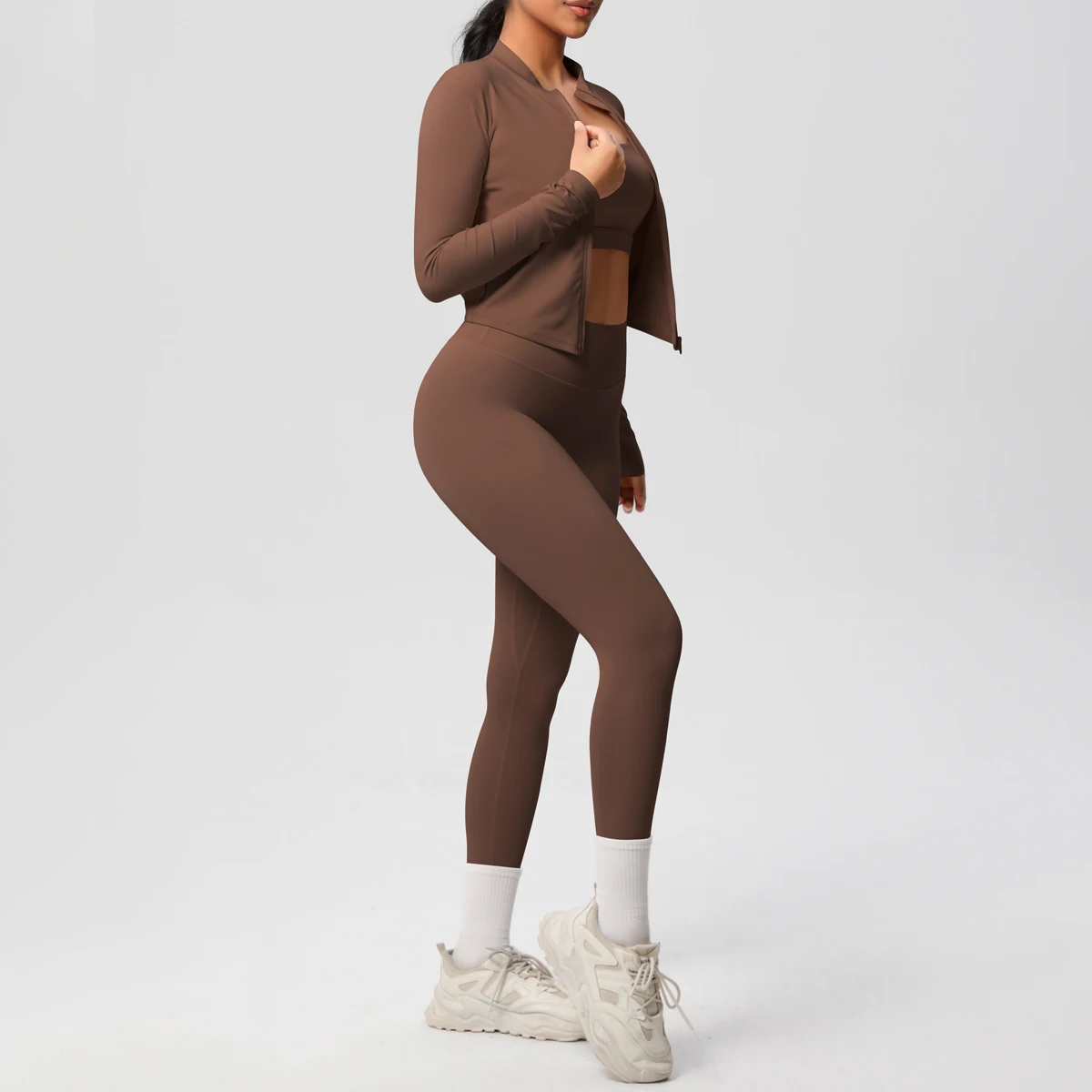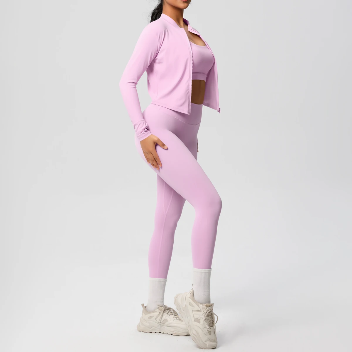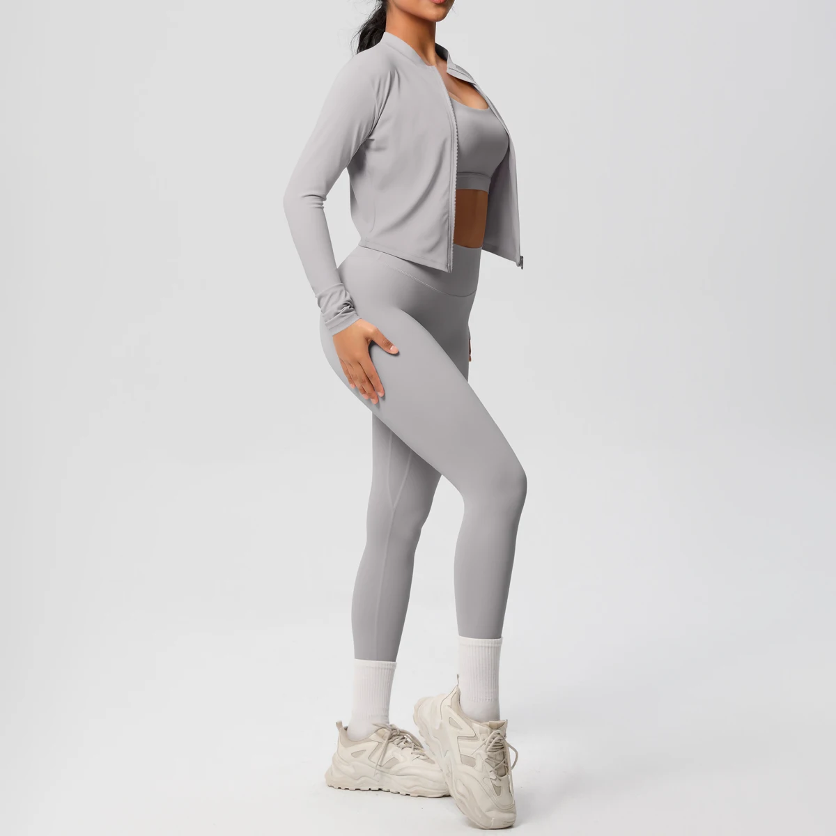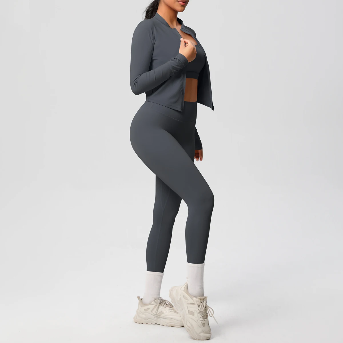 3-Piece Women's Sportswear Yoga Set – Zipper Jacket, Sports Bra & Leggings