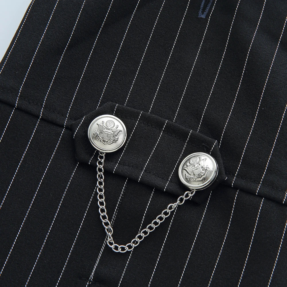 Classic tuxedo design with festive red accents or formal black