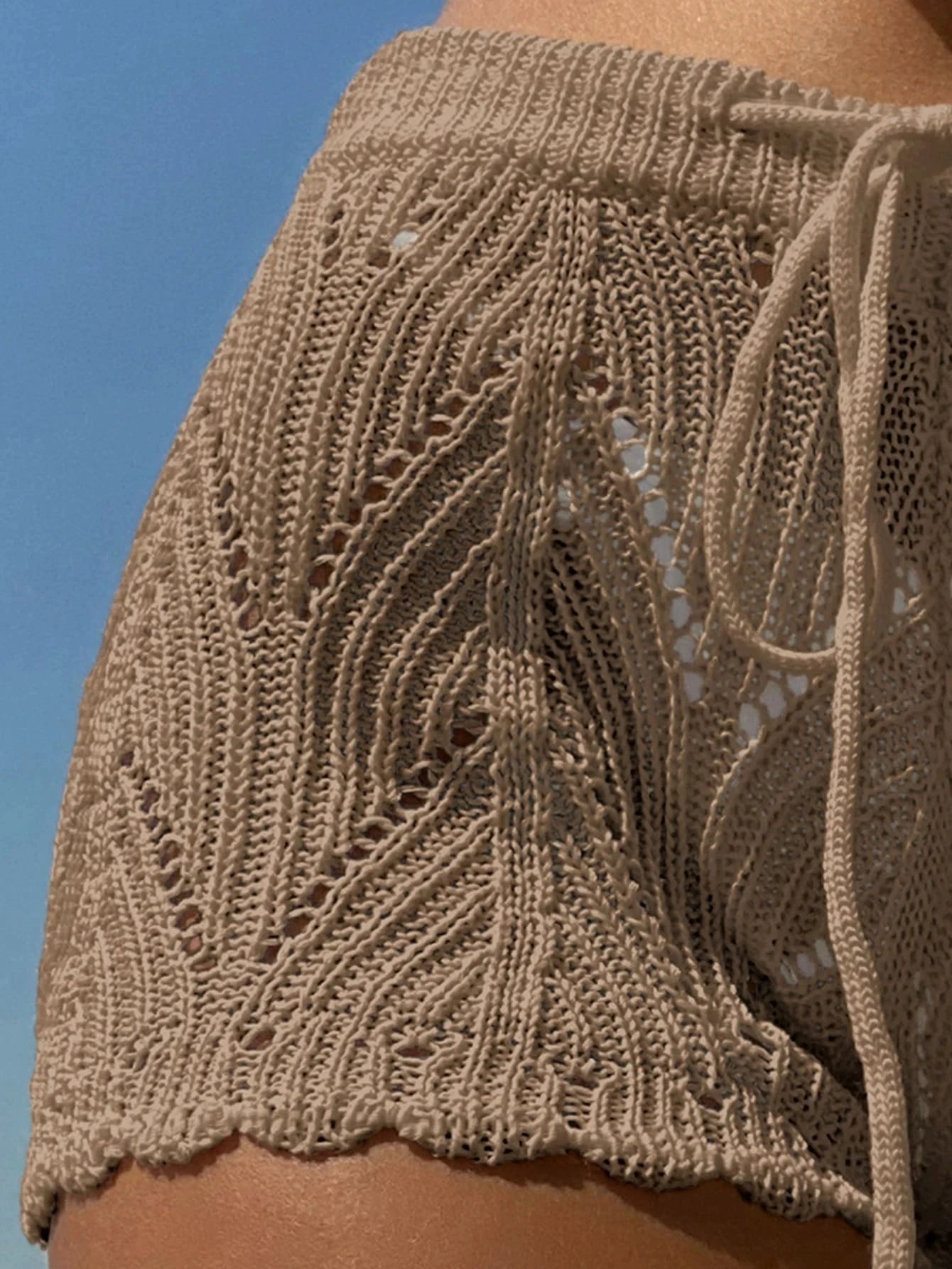Women's Hollow Knit Drawstring Shorts – Open Waist Beach Style
